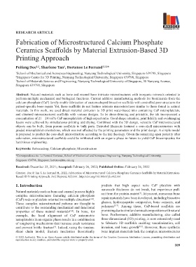 Citation: Dee P, Tan S, Le Ferrand H., 2022, Fabrication of Microstructured Calcium Phosphate Ceramics Scaffolds by Material Extrusion-