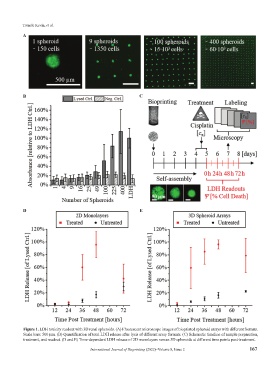 Figure 1. LDH toxicity readout with 3D renal spheroids. (A) Fluorescent microscope images of bioprinted spheroid arrays with different formats.