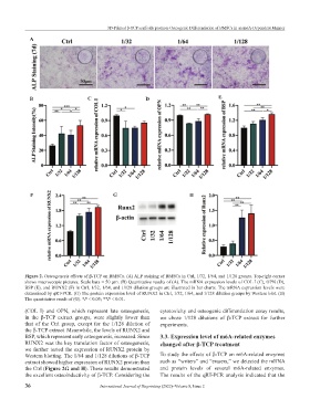 Figure 2. Osteogenesis effects of β-TCP on BMSCs. (A) ALP staining of BMSCs in Ctrl, 1/32, 1/64, and 1/128 groups. Top-right corner