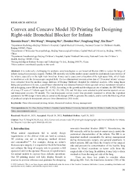 Citation: Duan X, Wang W, Ma W, et al., 2022, Convex and concave model 3D printing for designing right-side bronchial blocker for infants,