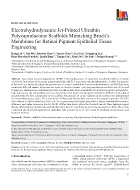 Citation: Liu H, Wu F, Chen R, et al., 2022, Electrohydrodynamic Jet-Printed Ultrathin Polycaprolactone Scaffolds Mimicking Bruch’s