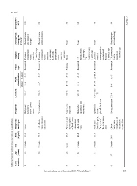 Surgical history Posterior mediastinal tumor resection 5 months ago Posterior mediastinal tumor resection 2 years ago; Left sixth rib recurrent tumor resection 1 year ago None T9 laminectomy 5 years ago; T9 vertebrectomy 4 years ago Anterior cervical decompression and internal fixation 5 months ago T3 intraspinal tumor resection 7 months ago
