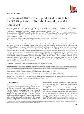 Citation: Yang Y, Xu R, Wang C, et al., 2022. Recombinant Human Collagen-Based Bioinks for the 3D Bioprinting of Full-thickness Human
