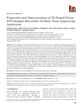 Citation: Dong Z, Gong J, Zhang H, et al., 2022. Preparation and Characterization of 3D Printed Porous 45S5 Bioglass Bioceramic for Bone