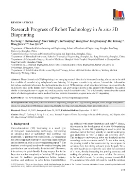 Citation: Neng X, Guohong S, Yuling S, et al., 2022, Research Progress of Robot Technology in In situ 3D Bioprinting. Int J Bioprint, 8(4):