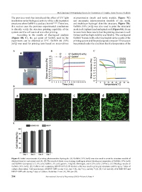 Figure 8. Initial experiments of printing photosensitive hydrogels. (A) GelMA (10% [w/t]) was also used to print the structure models of