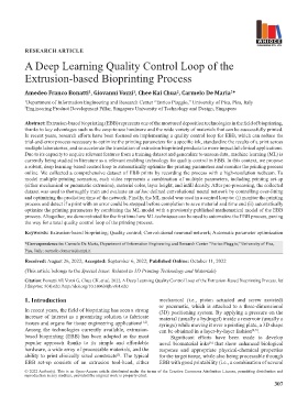 Citation: Bonatti AF, Vozzi G, Chua CK, et al., 2022, A Deep Learning Quality Control Loop of the Extrusion-Based Bioprinting Process. Int