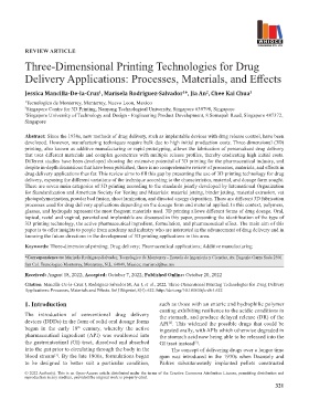Citation: Mancilla-De-la-Cruz J, Rodriguez-Salvador M, An J, et al., 2022. Three-Dimensional Printing Technologies for Drug Delivery