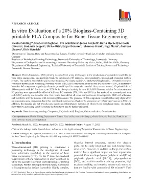 Citation: Söhling N, Al Zoghool S, Schätzlein E, et al., 2022, In vitro Evaluation of a 20% Bioglass-Containing 3D Printable PLA Composite