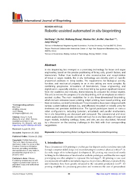 Accepted: September 20, 2022 Keywords: In situ bioprinting; Robot configurations; Robotic-assisted bioprinting