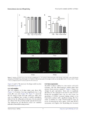 Figure 7. Viability of normal human knee articular chondrocytes (1 × 10 cells∙mL ) bioprinted with 0.75% alginate_4.0% gelatin_1.4% CCNC bioink