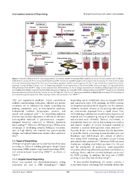 Figure 1. Schematic illustration of 3D bioprinting systems. (A) Droplet-assisted bioprinting (DBB) includes (a) ink-jet, (b) laser-assisted, and (c) electro-