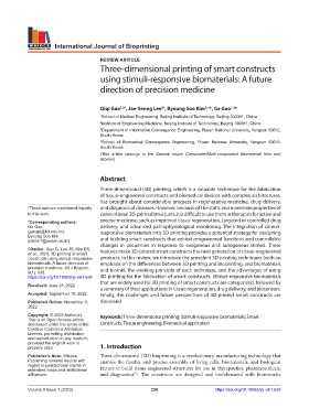Copyright: © 2022 Author(s). Keywords: Three-dimensional printing; Stimuli-responsive biomaterials; Smart
