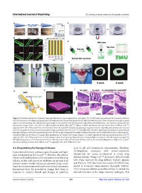 Figure 6. Potential applications of stimuli-responsive bioinks for tissue regeneration and repair. (A) AA-MA tube responsiveness in immersed solutions