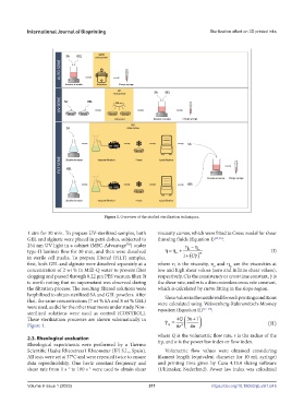 GEL and alginate were placed in petri dishes, subjected to thinning fluids (Equation I) [35,36] :