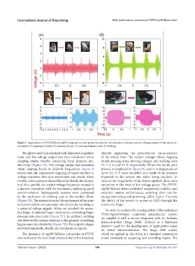 and then quickly, the output voltage frequency reacted in variations in the sizes of the voltage peaks. The PVDF/