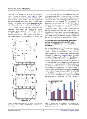 Figure 9. Thermogravimetric analysis of the alginate-based composite Figure 10. Tensile strength and elongation at break of alginate-based