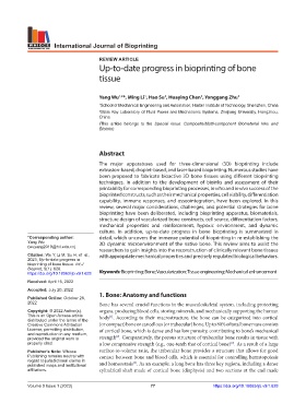 https://doi.org/10.18063/ijb.v9i1.628 Keywords: Bioprinting; Bone; Vascularization; Tissue engineering; Mechanical enhancement