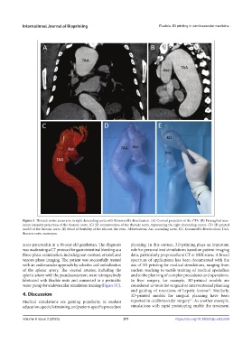 imum intensity projection of the thoracic aorta. (C) 3D reconstruction of the thoracic aorta, representing the right descending course. (D) 3D-printed