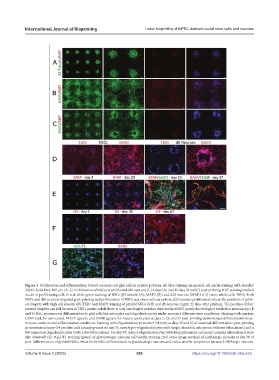 Figure 3. Proliferation and differentiation toward neurons and glial cells in printed patterns. All blue staining are general cell nuclei staining with Hoechst