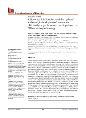 https://doi.org/10.18063/ijb.689 technology. QCS was synthesized by modifying quaternary ammonium group