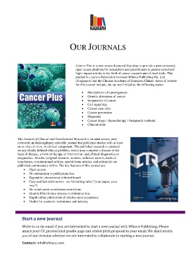 Cancer Plus is a new research journal that aims to provide a peer-reviewed,