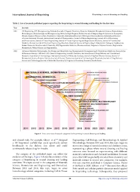 Table 2. List of journals published papers regarding the bioprinting in wound dressing and healing for the first time