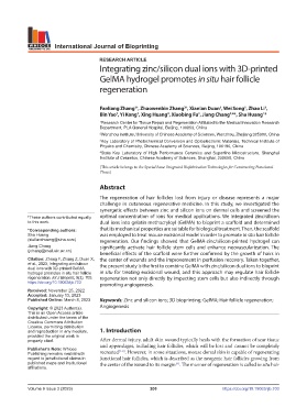 Published Online: March 8, 2023 Keywords: Zinc and silicon ions; 3D bioprinting; GelMA; Hair follicle regeneration;