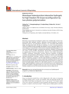Int J Bioprint, 9(3): 678. driven hydrogel grippers, diverse 2D-to-3D transforming from the same monolayer