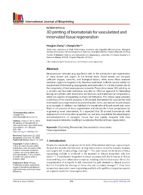 regeneration. Int J Bioprint, Keywords: 3D printing; Biomaterials; Vascularization; Innervation;