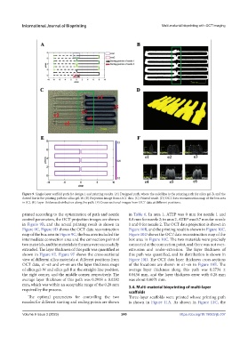 in Figure 9B, and the actual printing result is shown in 1 and 0 for nozzle 2. The OCT data projection is shown in