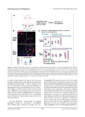 and dystrophin-positive myofibers (white arrows) in DLL1-DermaMatrix construct group. (C) Proposed mechanism for the improved muscle stem cell