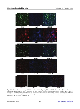 printing-M on the 10 day. Ki67 is green and blue is DAPI. (D) Immunofluorescence staining of macrophage M2 cells on the 10 day in 3D printing-M.
