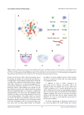 wrapped with neurons . (B) The bioprinted glioma in vitro 3D model with glioma cells in the inner layer and neurons in the outer layer (G/N) (d = 8 mm,