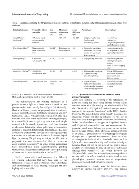 Table 1. Comparison among the 3D printing techniques in terms of the typical material and printing specifications, and their pros