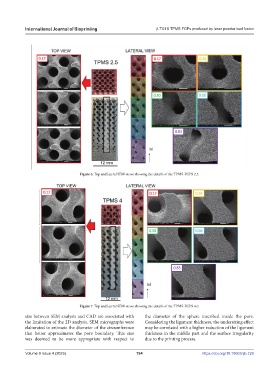 size between SEM analysis and CAD are associated with the diameter of the sphere inscribed inside the pore.