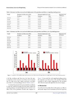 Table 3. Maximum von Mises stress and node displacement of the prostheses and tibia at a two-leg standing posture