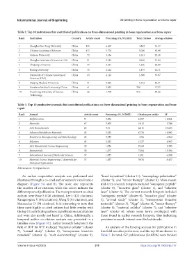 Table 2. Top 10 institutions that contributed publications on three-dimensional printing in bone regeneration and bone repair