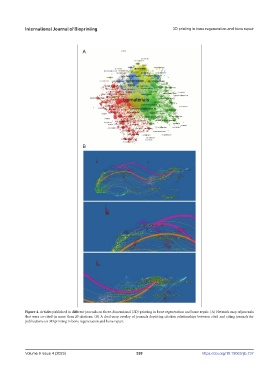 Figure 4. Articles published in different journals on three-dimensional (3D) printing in bone regeneration and bone repair. (A) Network map of journals