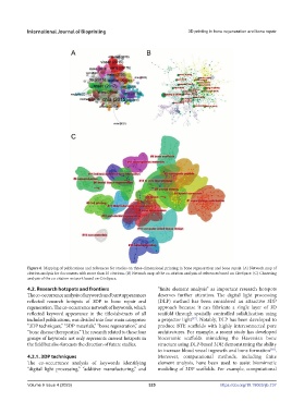 Figure 6. Mapping of publications and references for studies on three-dimensional printing in bone regeneration and bone repair. (A) Network map of