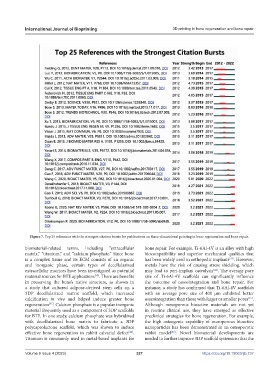 Figure 7. Top 25 references with the strongest citation bursts for publications on three-dimensional printing in bone regeneration and bone repair.