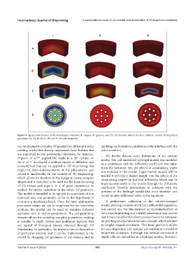 Figure 6. Spatial distribution of the investigated variables (I: oxygen; II: glucose; and III: cell density) within the four different models of bioprinted