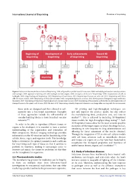 with syringes. 2003: approach of joining cells with hydrogels to form organs. 2004: emergence of the term “bioprinting.” 2006: encapsulation of cells in