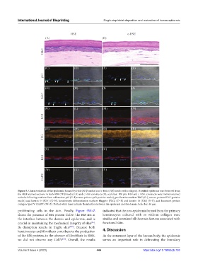 Figure 5. Characterization of the epidermis formed by HSE (PDβ media) and c-HSE (PDβ media with collagen). Stratified epidermis was observed from