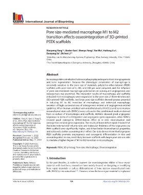 distributed under the terms of the Keywords: PEEK; 3D printing; Pore size, Macrophage, Osseointegration