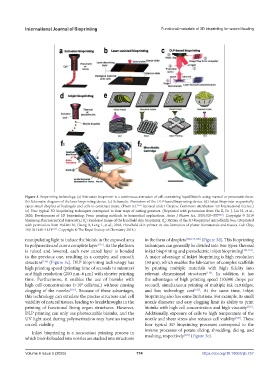 manipulating light to induce the bioink in the exposed area in the form of droplets [106,117-120] (Figure 3d). This bioprinting