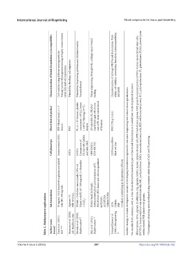 Table 2. Multipurpose applications Ink formulation Author (year); Dani et al. (2021); Alginate 1% Faramazi et al. (2018); PRP 50 U/mL Adv Healthcare Mat Mendes et al. (2020); Biofabrication [73] + CaCl 2 ) Min et al. (2021); Biofabrication [74] in PLMA) ALG:PLMA Gelatin:PLMA ADA Somasekharan et al. Gelatin (2020); Bioengineering PRP methacrylated; PRP, platelet-rich plasma.