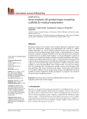 https://doi.org/10.18063/ijb.764 Keywords: 4D printing; Shape-morphing scaffolds; Medical implants; Tissue