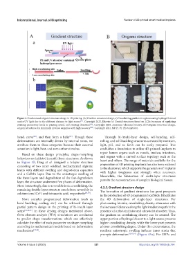 Figure 4. Gradient and origami structure design in 4D printing. (A) Gradient structural design, a) Crosslinking gradient in a photocuring hydrogel formed