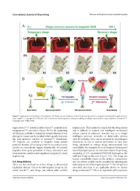 Figure 7. Application of 4D printed in bone defects. (A) Shape recovery behavior of the 4D-printed structure in a magnetic field and their application for